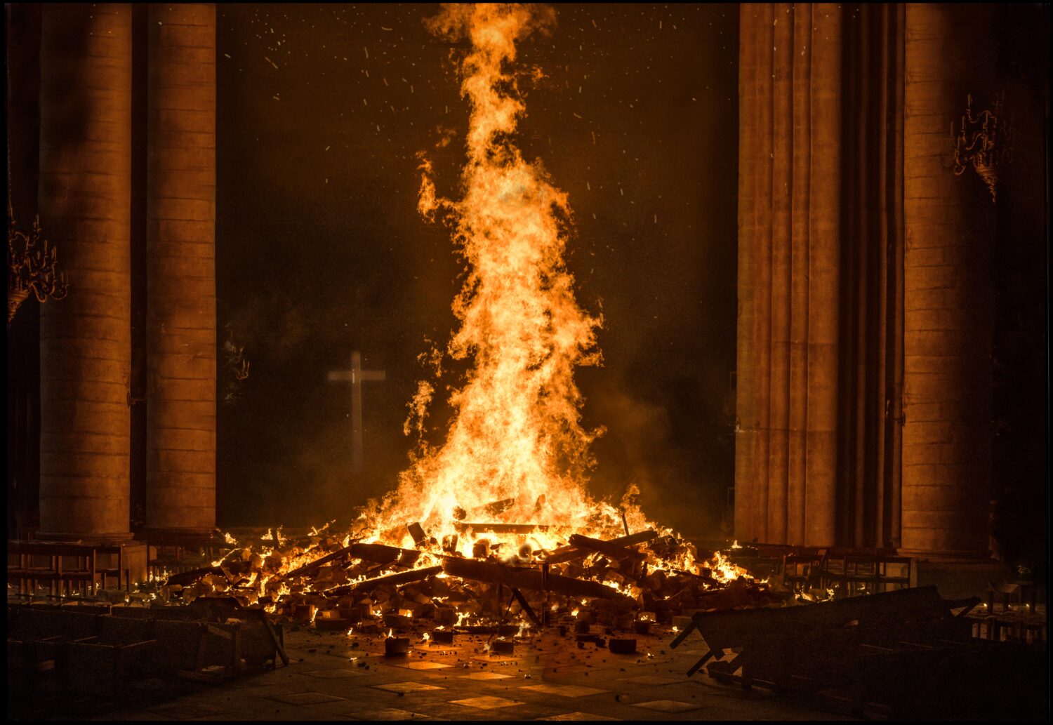 2019年4月15日、ノートルダム大聖堂、大規模火災。 フランス・パリの街に794前に建造され、ゴシック建築の最高峰として名高い、世界遺産・ノートルダム大聖堂。 「ノートル(我々の)・ダム(聖母)」という名が示す通り、その存在は宗教や国境さえ超えて、人々に愛され、人々を見守ってきた。 その大聖堂が今、火に包まれ、崩れ落ちようとしている。大聖堂崩壊の危機が迫る中、それでも消防士たちは大聖堂も、聖遺物も、自分たちの命も、どれも諦めない。 決死の突入を試みる勇敢な消防士たちの姿・・・「死者ゼロ」の嘘のような衝撃の真実が今、明らかにされる。 ジャン=ジャック・アノー監督の元にフランス最高峰の映像・音響・舞台装置・特殊効果などの技術者チームが集結。 全編IMAXカメラで撮影され、実際に大規模なセットを炎上させての撮影とVFX(第48回セザール賞視覚効果部門ノミネート)の融合により、圧倒的なリアリティと臨場感で98%再現。